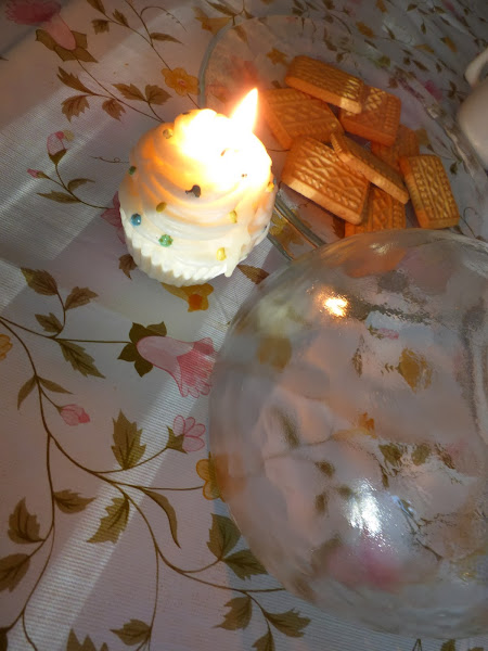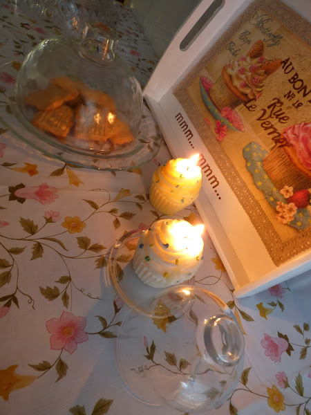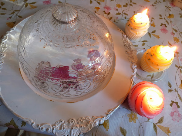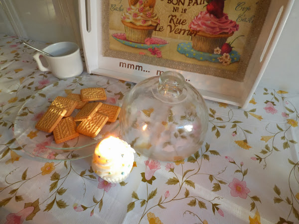 Mi quesera de cristal que no uso para el fin al que estaba destinada, la he convertido en cloche decorativa, bien con una vela, o con alguna cosita para desayuno o merienda