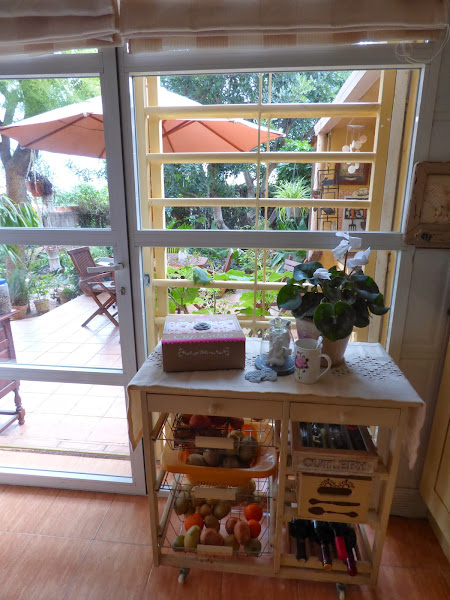 En la cocina tengo este ventanal que dá a una terracita...la que veis en muchas de mis fotos...en verano la usamos muchisimo porque siempre corre mucha brisa...está orientada al Este, al mar y es una delicia.