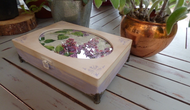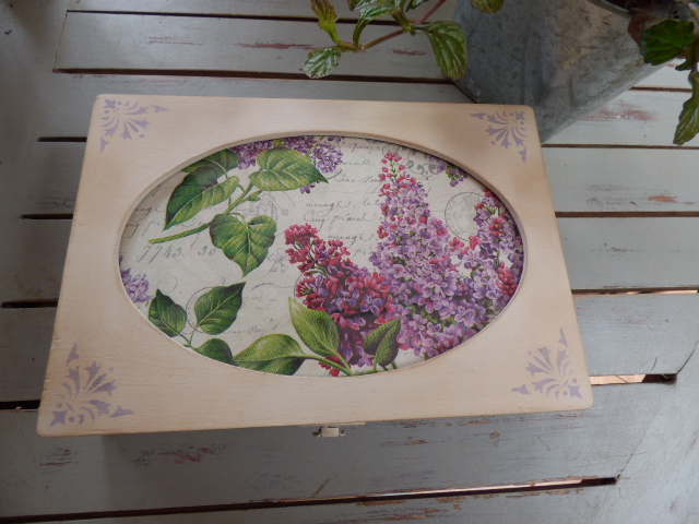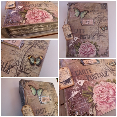 Y por último esta es la caja libro que haremos en el taller del próximo dia 9 de Junio. Lleva papel de arroz, adornos metálicos, craquelado con stencil y tag decorado con sellos.