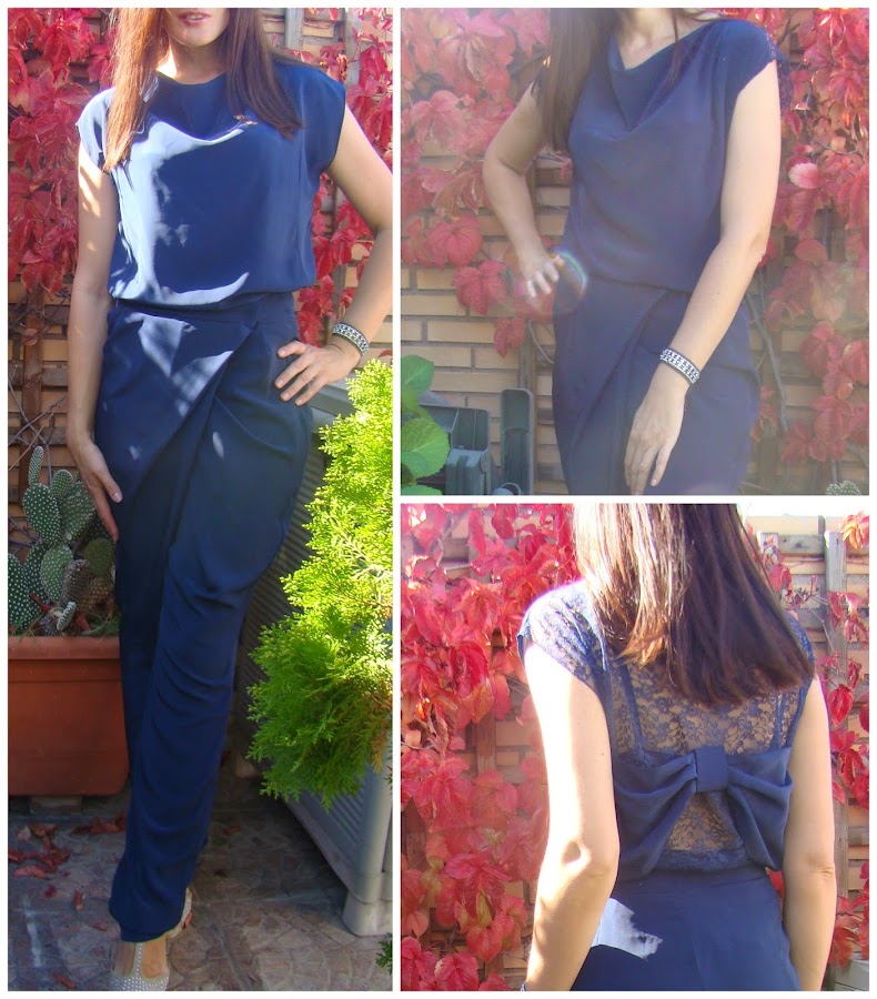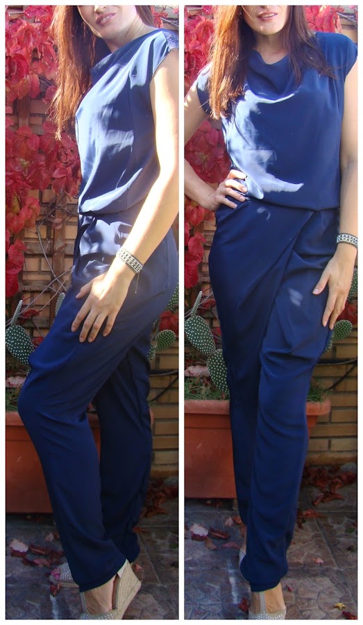 Es el pantalón que hace "pareja" con la blusa de espalda de encaje que os enseñaba aquí. En realidad lo primero que corté fue el pantalón y viendo que casi me había comido toda la tela ideé lo de la espalda de encaje y lo de la lazada en la espalda fue otro invento que me permitió evitar demasiadas transparencias.