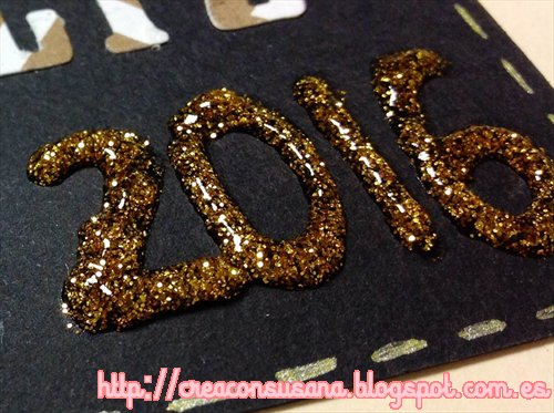 Para hacer el texto en purpurina dorada, he utilizado el glitter de Tesa por el que nos volvimos locas en la promoción que saco Lidl a principios de mes y la verdad es que me encanta como queda ;))