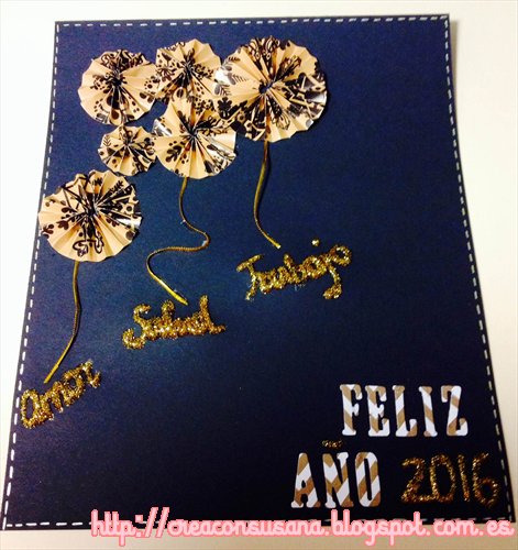 Los colores que he utilizado han sido el dorado y negro, porque creo que nos trasmiten elegancia para una noche de fin de año.