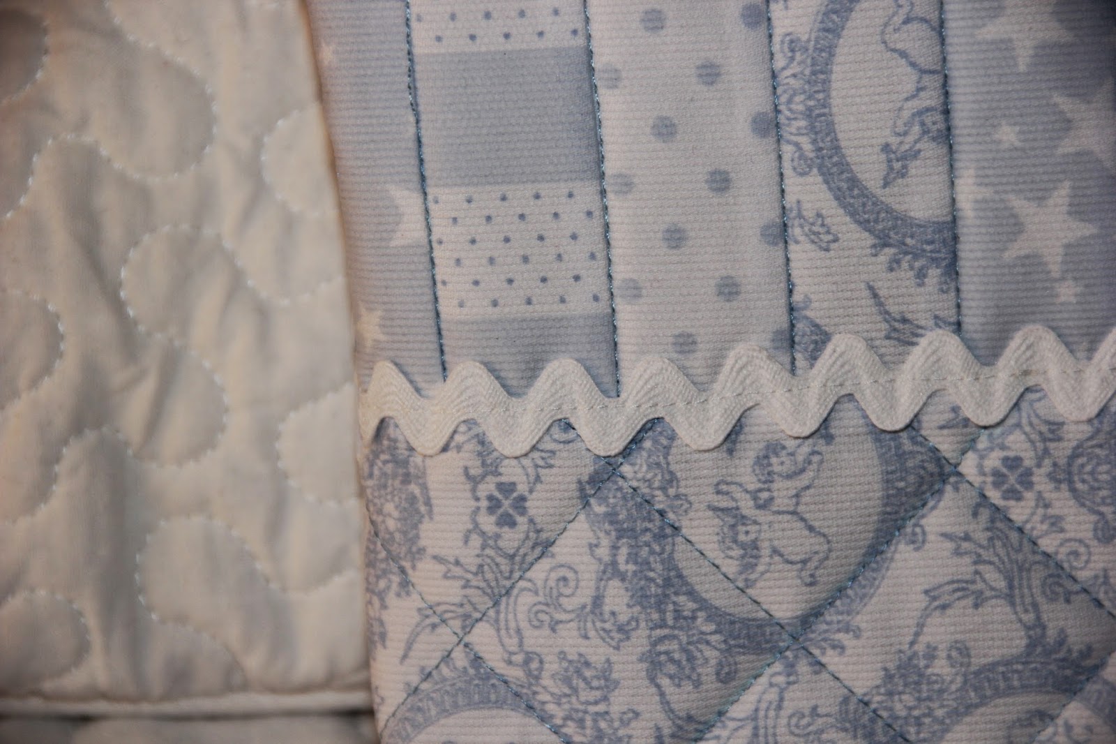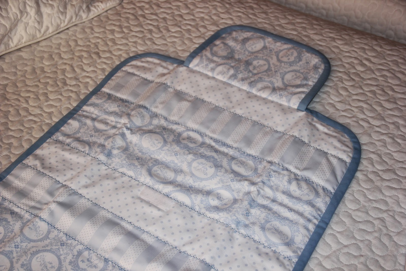 En este caso he utilizado telas de piqué en azul y blanco, unos colores muy de bebé.