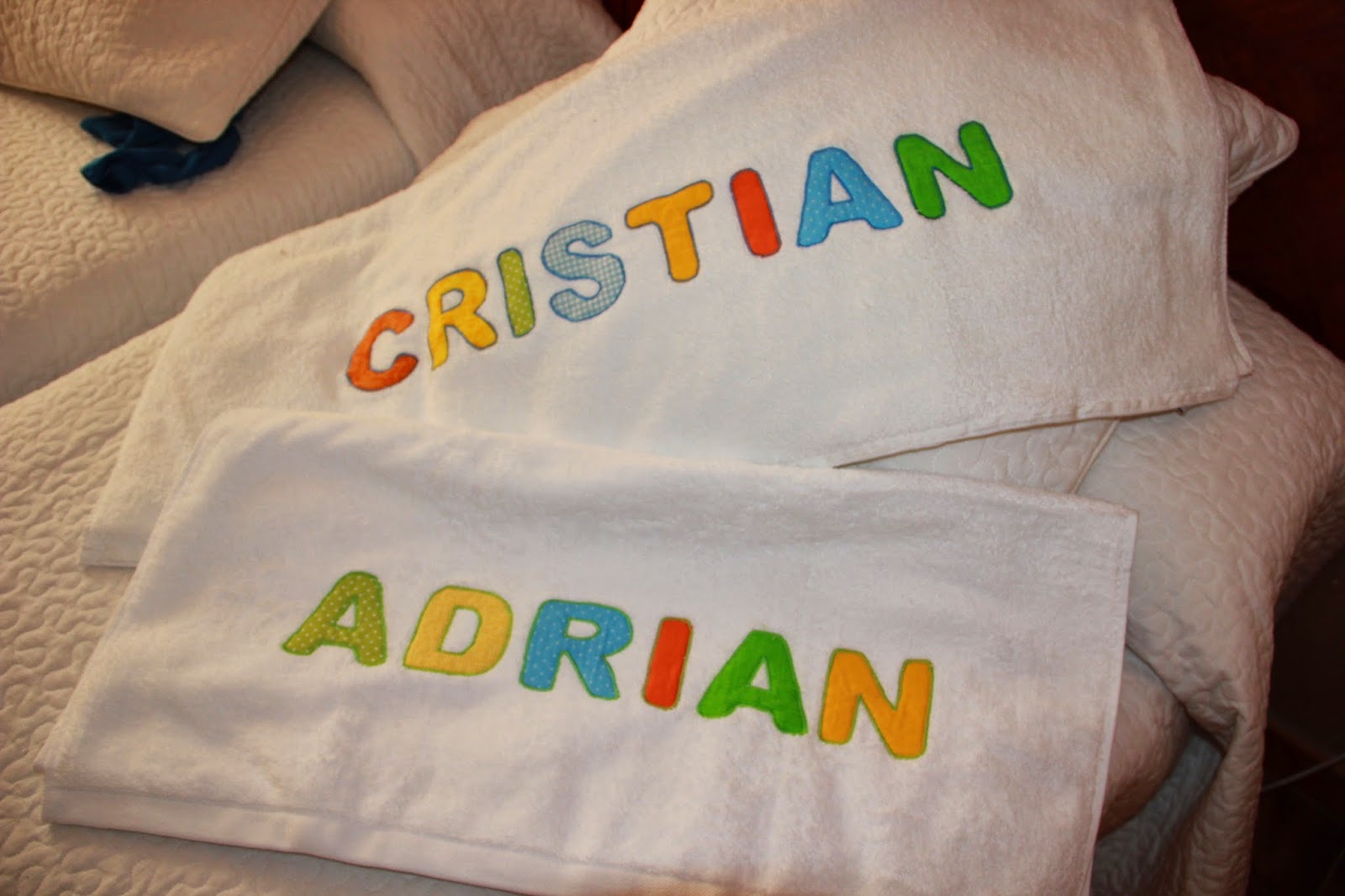 Otro de los conjuntos que hice fue para una de mis amigas y esta vez también hice una toalla a juego con el nombre del niño.