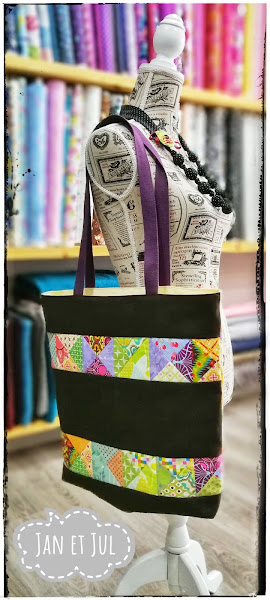 Este es un bolso donde nos dieron total libertad, tan sólo nos dieron unas medidas aproximadas y que fuera colorido nos pusimos con la máquina de coser y salió esta preciosidad