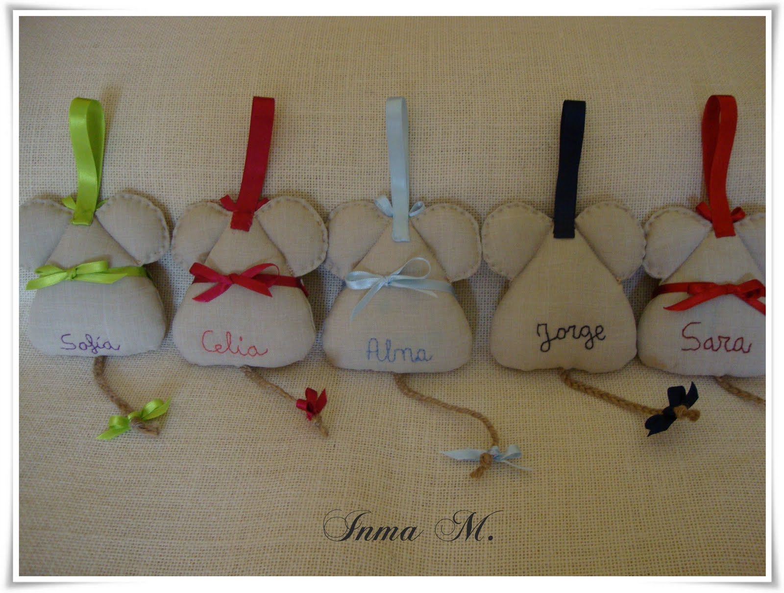 Esto es lo que he mandado esta misma semana, con muchisimo éxito pues a su dueña le ha encantado, es toda una colección de ratones personalizados para sus sobrinos.