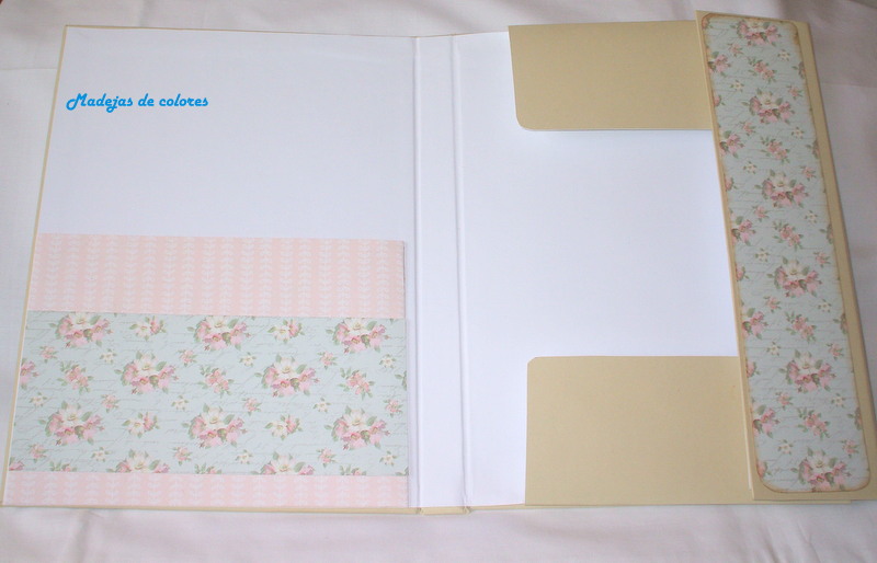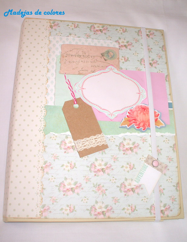 Empiezo con la carpeta que me hizo mi hermana, totalmente shabby, con una mezcla de papeles que me encantan, de colores tan suaves, delicados y románticos.