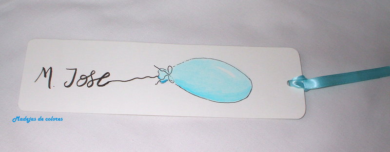 Más de cerca detalle del marcador y su reverso, realizado con unos rotuladores especiales, que con agua quedan como acuarelas, muy fino verdad?