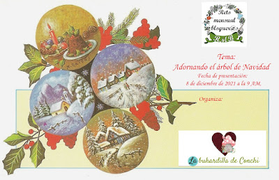 Como siempre tenéis toda la información sobre estos retos en los blogs de las anfitrionas, así que ánimo y a participar que tenemos que cerrar el Año con un montón de creatividad y trabajos preciosos que seguro que Papá Noel y los Reyes Magos nos ayudan a completarlos.