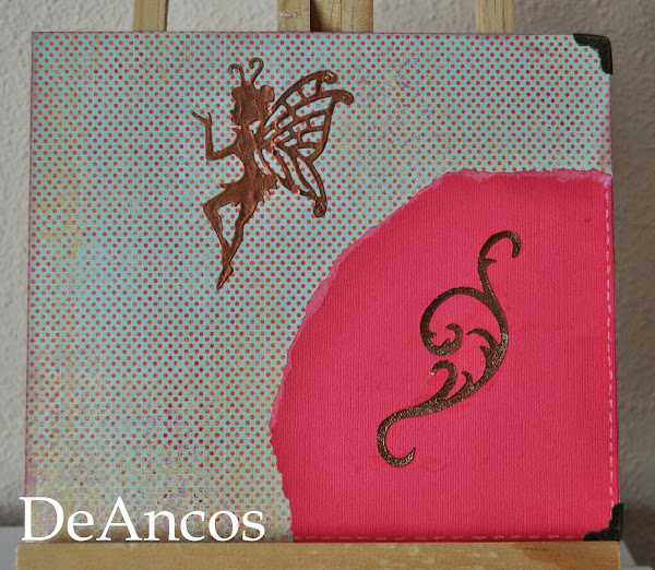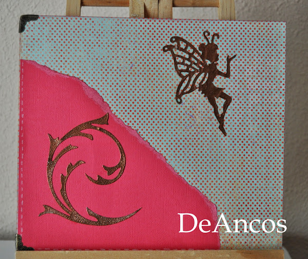 Tanto las haditas como los arabescos están embosados con polvos color cobre. Me encanta el efecto que conseguí.