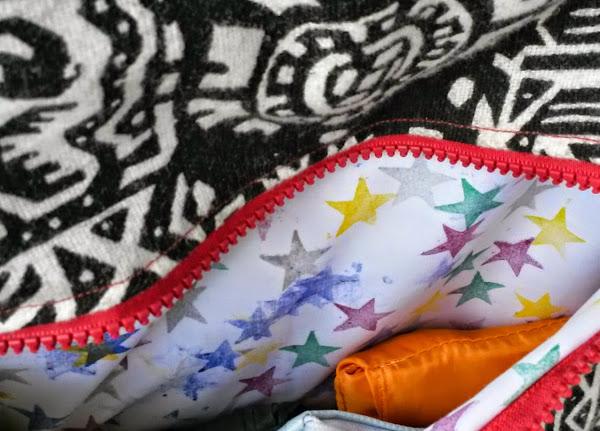 Las telas de los interiores de los bolsillos están estampadas por mi niño y por mi.