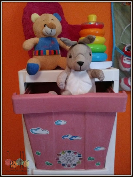 Hace muchísimo tiempo que teníamos un armario de reciclaje, a pleno rendimiento, pero con la llegada de nuestra hija y las "remodelaciones" en la casa ya no teníamos espacio para seguir manteniéndolo en su sitio y decidimos quitarlo y tirarlo o regalarlo. Pero, cuando estaba a punto de desmantelarlo, se me encendió la bombilla y, mientras evitaba caerme al pisar un patito de goma, decidí que ¿y si lo tuneaba y le daba un nuevo uso?