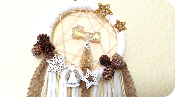 Hoy os traigo un DIY navideño muy sencillo, surgió a partir de un vistazo general a una selección de materiales que tenía por casa, los puse todos juntos y eligiendo unos cuantos salió este atrapasueños.