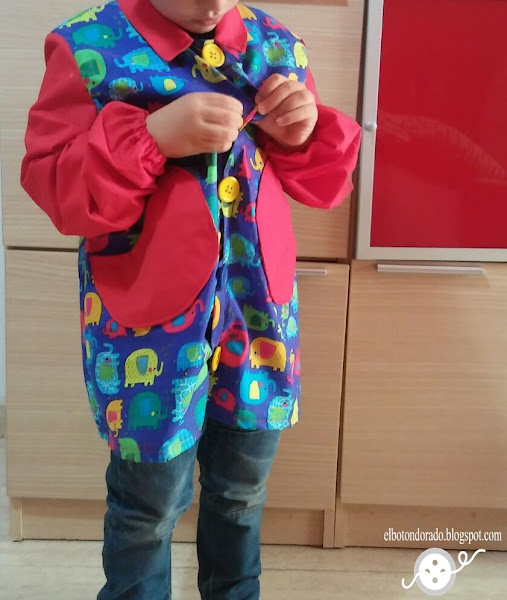 Aunque apenas se aprecian, los botones son amarillos y azules, a juego con los elefantes.