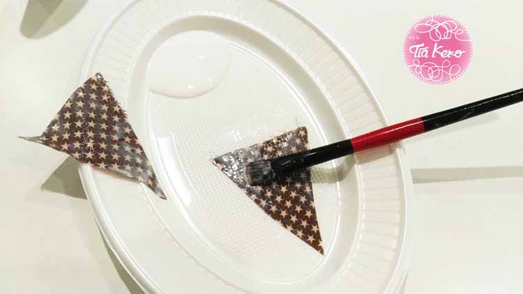 Ahora vamos a plastificar la tela para que tenga más consistencia y se mantenga firme en lo alto del mástil.