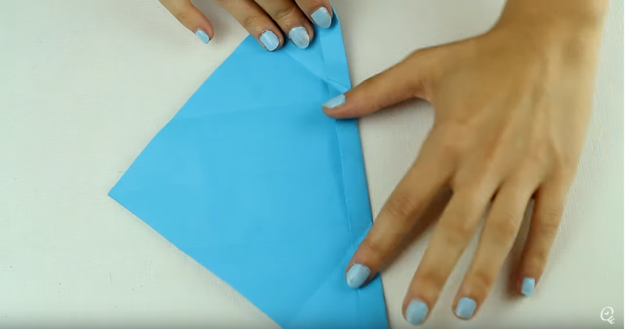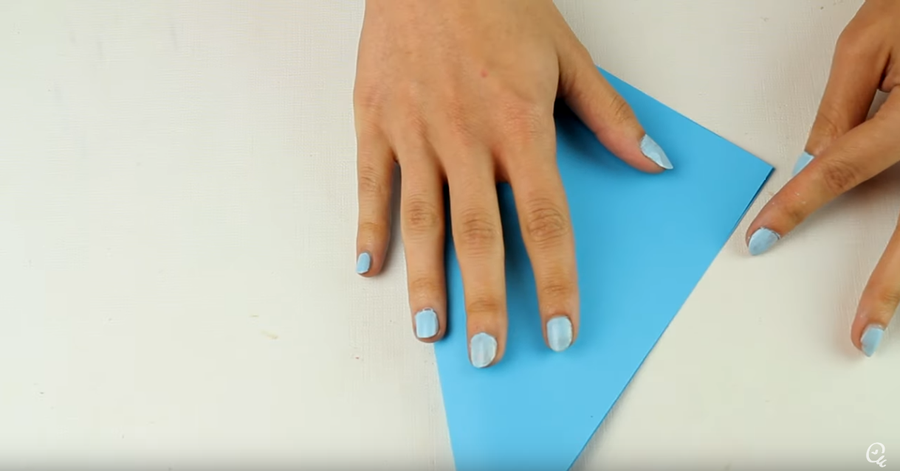 1. Para comenzar, dobla el cuadrado de papel de colores haciendo que los extremos de las puntas queden juntas. Después, vuelve a hacer lo mismo con los otros extremos diferentes.