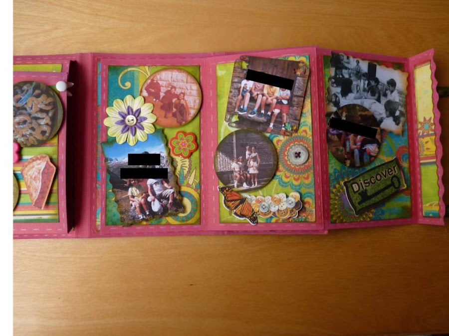 Al abrir el álbum, aparecen dentro varios añadidos que amplían el espacio para poner fotos y adornos. Es increíble todo lo que cabía en él: