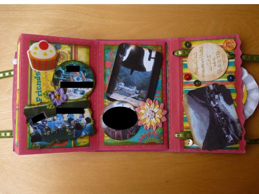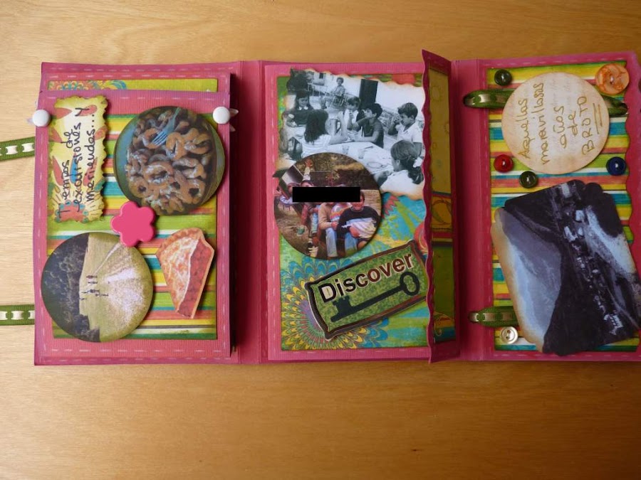 En esta imagen se ven tres partes bien diferenciadas. Y la de la izquierda y la del centro guardan sorpresa, ya aque se dsepliegan a su vez en otros mini álbums.