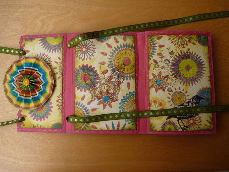 Hola, hola. Ya estoy otra vez aquí para enseñaros un nuevo trabajo. Es un mini álbum que hice a partir de una plantilla que me pasó mi hermana María. Ella lo hizo en un taller organizado por Tximeletak, la tienda de scrap de San Sebastián. Me lo enseñó, m encantó y decidí hacerlo. Acomodé un poco las medidas de su plantilla, y éste es el resultado:
