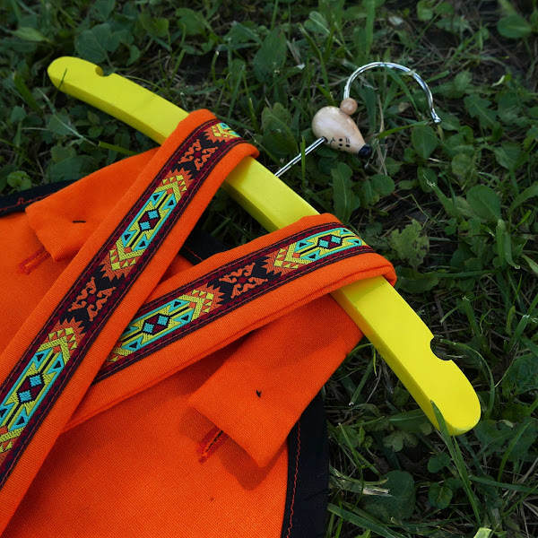 Así que he tomado un patrón de mi colección de Colours for Baby y utilizándolo como base, me he puesto a trabajar sobre ella. Y es que con una loneta naranja, para la confección de la ranita y sobre ella un bies negro para definir la forma redondeada, una tira decorativa para que los tirantes no pasen desapercibidos.