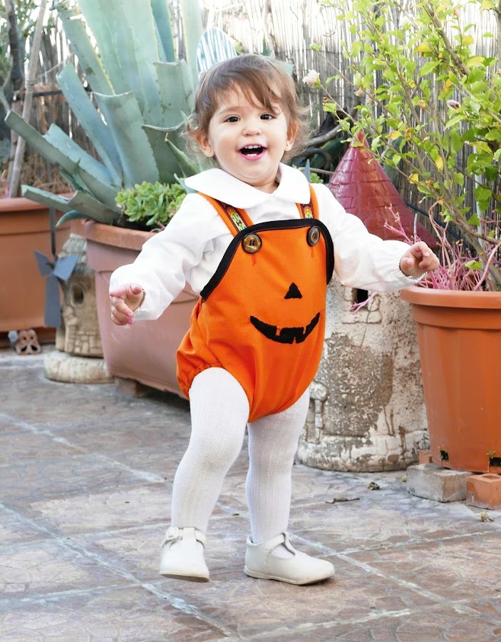 Esta pequeña es como la veis en las fotos, sonriente, espontánea y desde luego este año también se va con nosotros de Halloween. Así que pensando en lo que podía ponerle, pensé en algo muy para ella, algo cómodo, divertido y original.