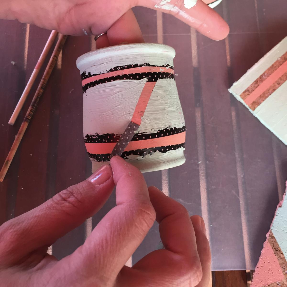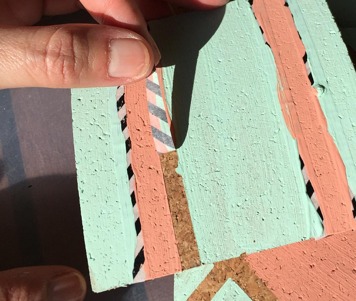 Paso 4: cuando la pintura está seca, retiramos el washitape con cuidado.