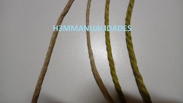 Barniz cerámico para proteger y dar brillo y rematar con cuerda la parte superior. Pero en este caso también quise experimentar con la cuerda. Quería darle un toque de color, así que lo que hice fue preparar agua con pintura acrílica y dejé un trozo de cuerda unas horas (cuando no se cuánto puede ser... lo dejo toda la noche...)