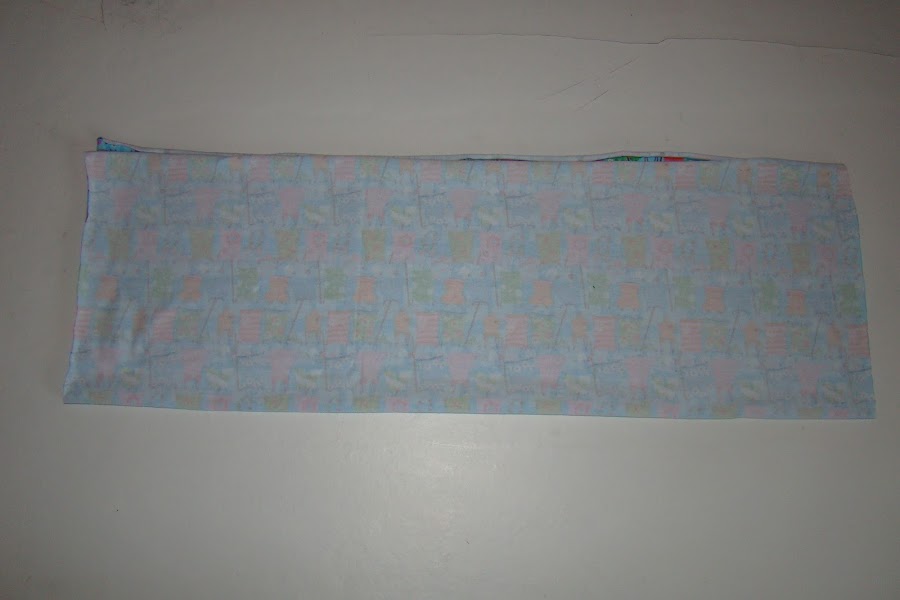 Tenemos el rectángulo de tela y lo doblamos en forma horizontal encarando los frentes de la tela.