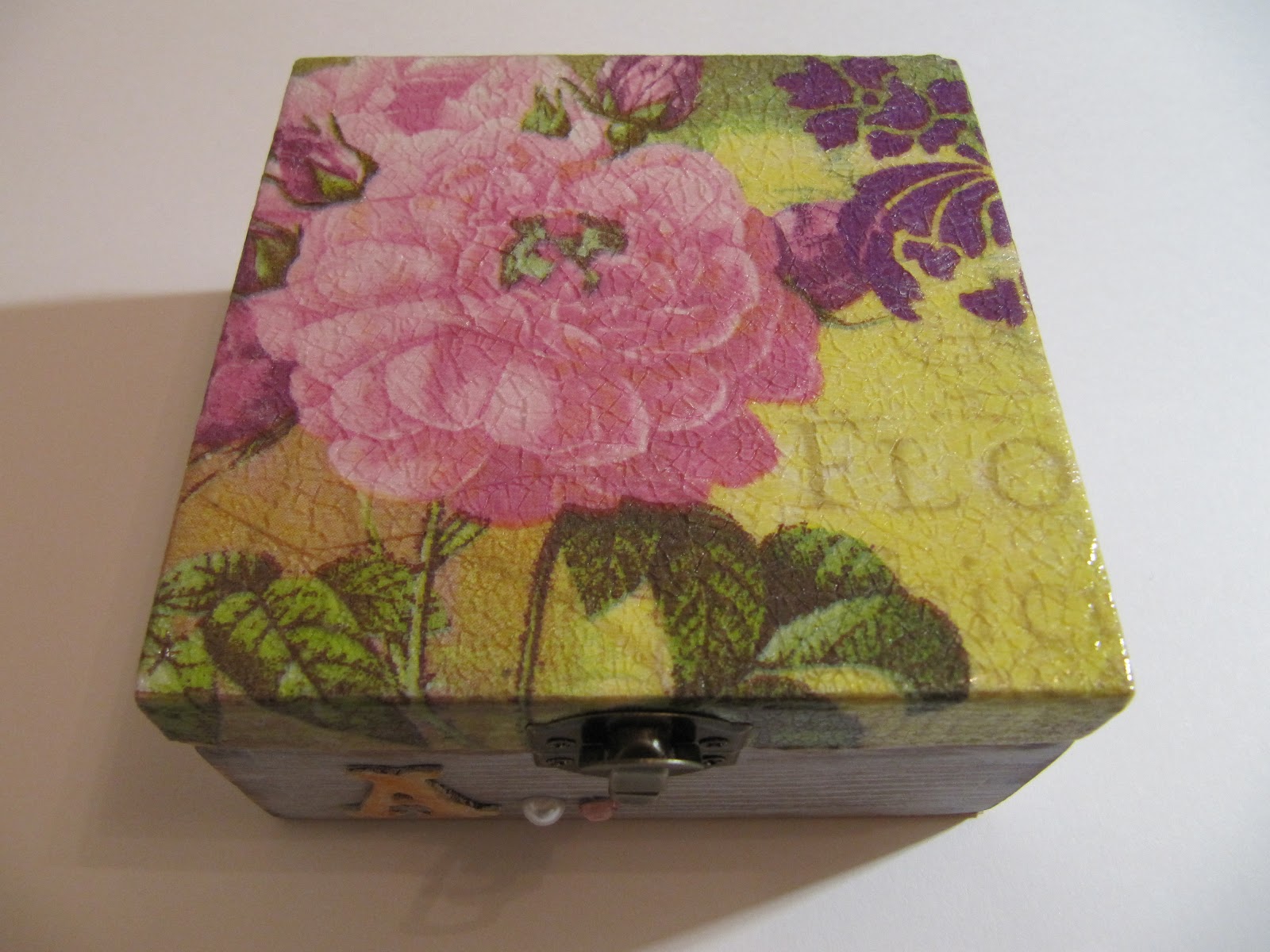 Compre una cajita de madera que vi bonita en una tienda, asi que me puse manos a la obra y con unas servilletas la decore estilo decoupage, y este fue el resultado quedo preciosa.Bueno a mi me gusta.