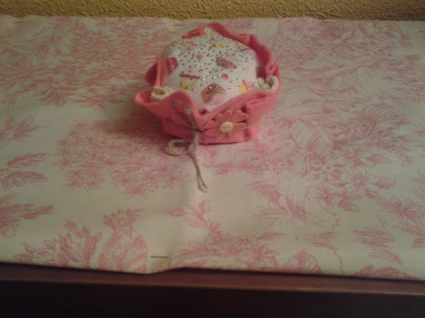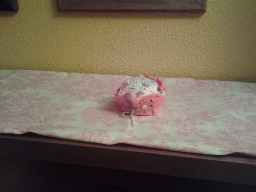 Puse una puntilla, color magenta y así quedó, disculpar por la mala calidad de la foto.