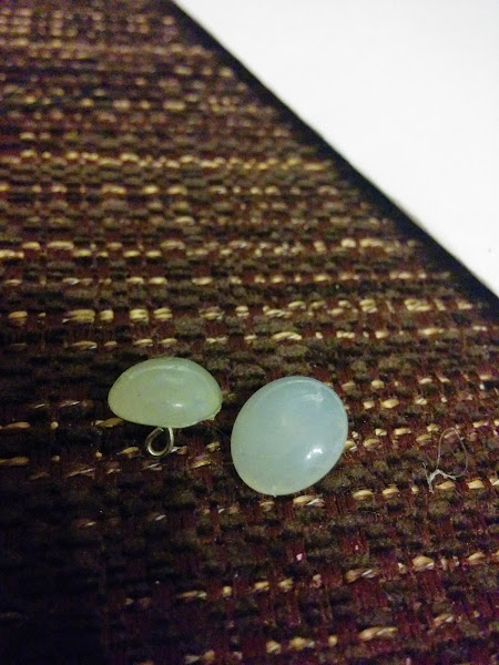El vestido lleva un cinturon tambien decorado con bieses, y para cerrarlo en la espalda le hice unos botones forrados caseros de la siguiente forma, con pegamento de silicona bien caliente sobre un plato hice unas gotas del tamaño de un boton pequeño y las deje secar, una vez seca las despegue del plato y con un alambre un poco gordito y la ayuda de un alicate le hice los encanches, con un trozo de viyela los forre y cosi al cinturon, no quedaron perfectos, pero creo que si sigo practicando me quedaran mucho mejor.