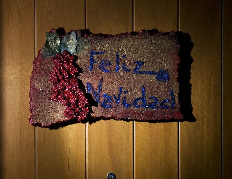 Una vez seco el cartel, ya podemos ponerlo donde nos apetezca. Lo más propio es colocarlo en la entrada de la casa; bastan para ello dos gotas de pegamento térmico, ya que la pieza es ligerísima. Acabadas las fiestas, lo retiraremos sin problema puesto que el adhesivo no deja huella. La misma técnica de este adorno os servirá para realizar otras manualidades a juego, como tapaderas de caja, adornos para el árbol, y centros de mesa, en muchos ratos de agradables preparativos.