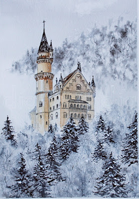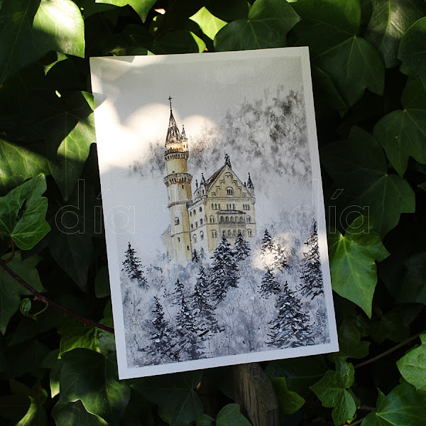 Esta pasada semana, en las clases de acuarelaque Virginia Higuero comparte en su cuenta de Instagram, el motivo que eligió para pintar fue una bonita vista invernal del Castillo de Neuschwanstein, en Alemania. Se trata de un precioso castillo, que parece sacado de un cuento de hadas. Y tanto es así, que se dice que en él se inspiró Walt Disney para construir el famoso castillo de la Bella Durmiente de Disneyland.