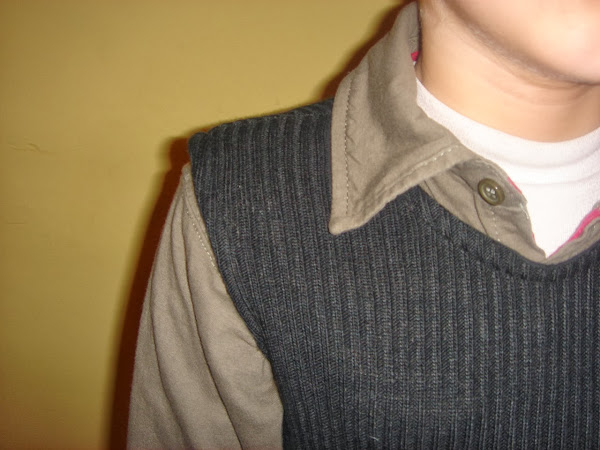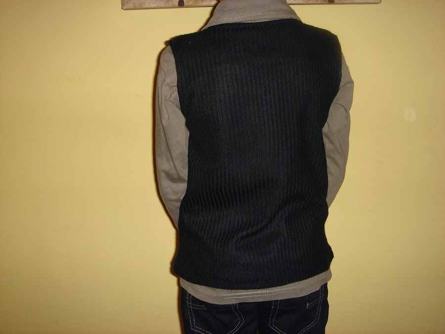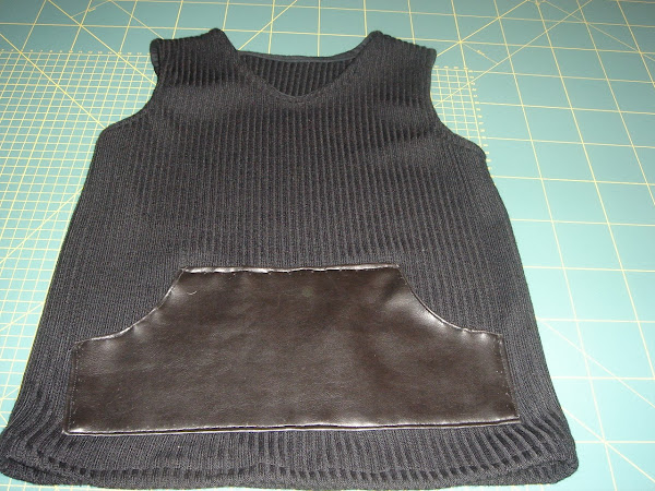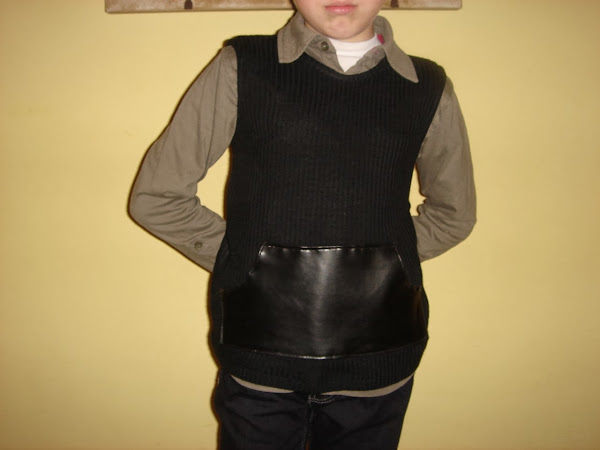Tenia un trozo de punto de lana con muestra de canale en color negro y un trozo de polipiel negra, que me habia sobrado de un jersey que me he confeccionado y pense en hacerle un chaledo para mi niño.