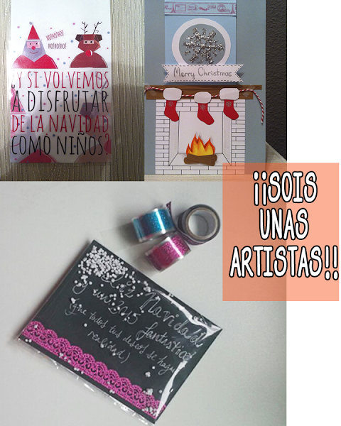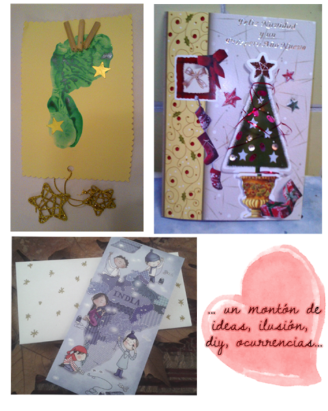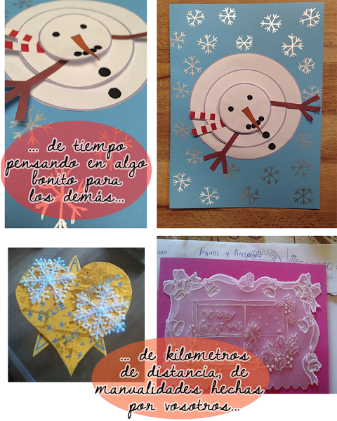 Como no quería que todo el trabajo que ha viajado y llegado a sus destinos se quedara sin que lo viera nadie, he decidido, aun sabiendo que quedan muchas tarjetas en "el limbo de los christmas perdidos" por llegar, hacer un resumen de estas cartas tan bellas que habéis mandado este año.