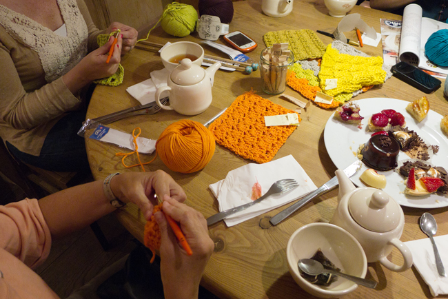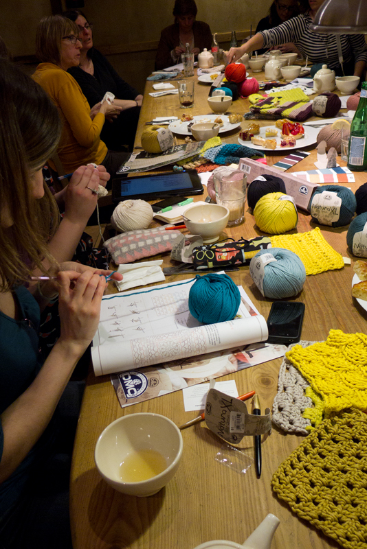 Me encantó conocer en persona a Gemma de Melimelum, Inge de Lady Crochet, Jenny de Crafteando que es gerundio, Leticia de La Ganchillería y Alba de Mishi Mushi. La presentación y merienda tuvo lugar en la cafetería Le Pain Quotidien de Barcelona, un lugar bien apropiado para una reunión de crafters y periodistas.