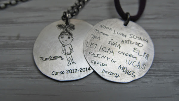 Esta vez os muestro unas chapas preciosas en plata, con los dibujos y las firmas de los propios alumnos.