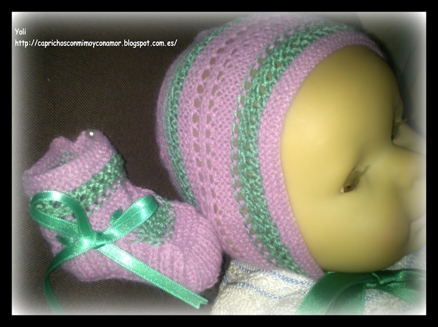 Hoy os presento unos conjuntos de capota y patucos que he echo, uno sera un regalo para Olatz la nena de una clienta que nacerá en mayo. Y el otro aun no tiene dueña, así ,que si te gusta alguno estas a tiempo de tenerlo. Déjame un mensaje o visítame en facebook y hablamos.