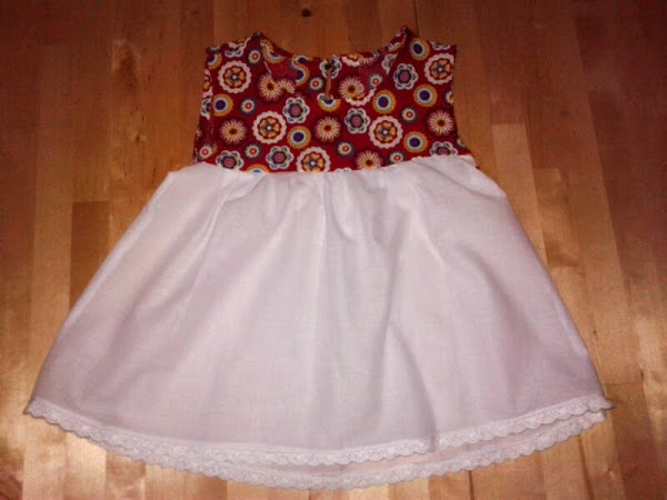 Buscando entre mis telas para hacerle algo a mi hija, apareció el retal, ella lo cogió y empezó a jugar como si fuera un vestido. Le pregunté a mi marido ¿qué harías con este retal?, y me dijo que un pantalón... Saqué un patrón de Burda Kids y si que me daba para un short!! Incluso me sobró un trocito y le hice una blusa con el canesú a juego.