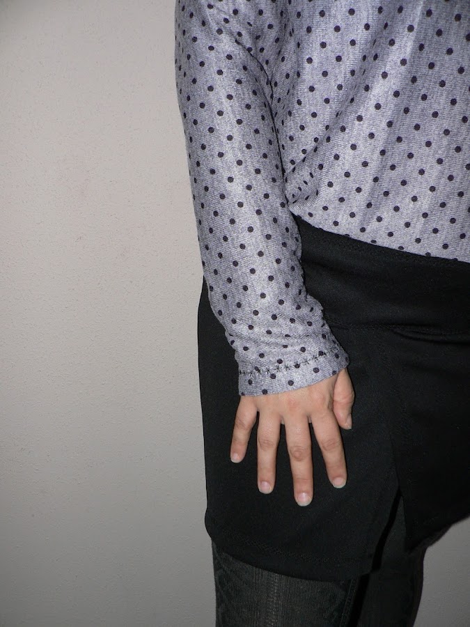 La tela es un punto no elástico muy fino pero muy gustoso que compré en el mercat dels encants en Barcelona. Parece gris en las fotos, pero visto en la mano tiene un tono más tirando a morado.