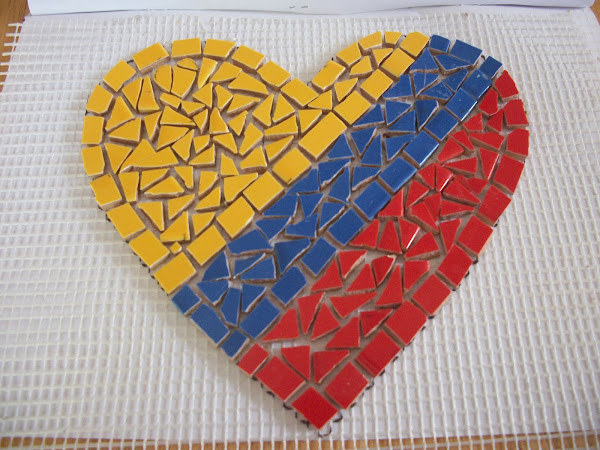 Entonces me decidí por dejar un poquito de mi patria en este bello mural haciendo este hermoso corazon con tecnica de malla y azulejos, que deseo con el alma que les guste tanto como a mi.
