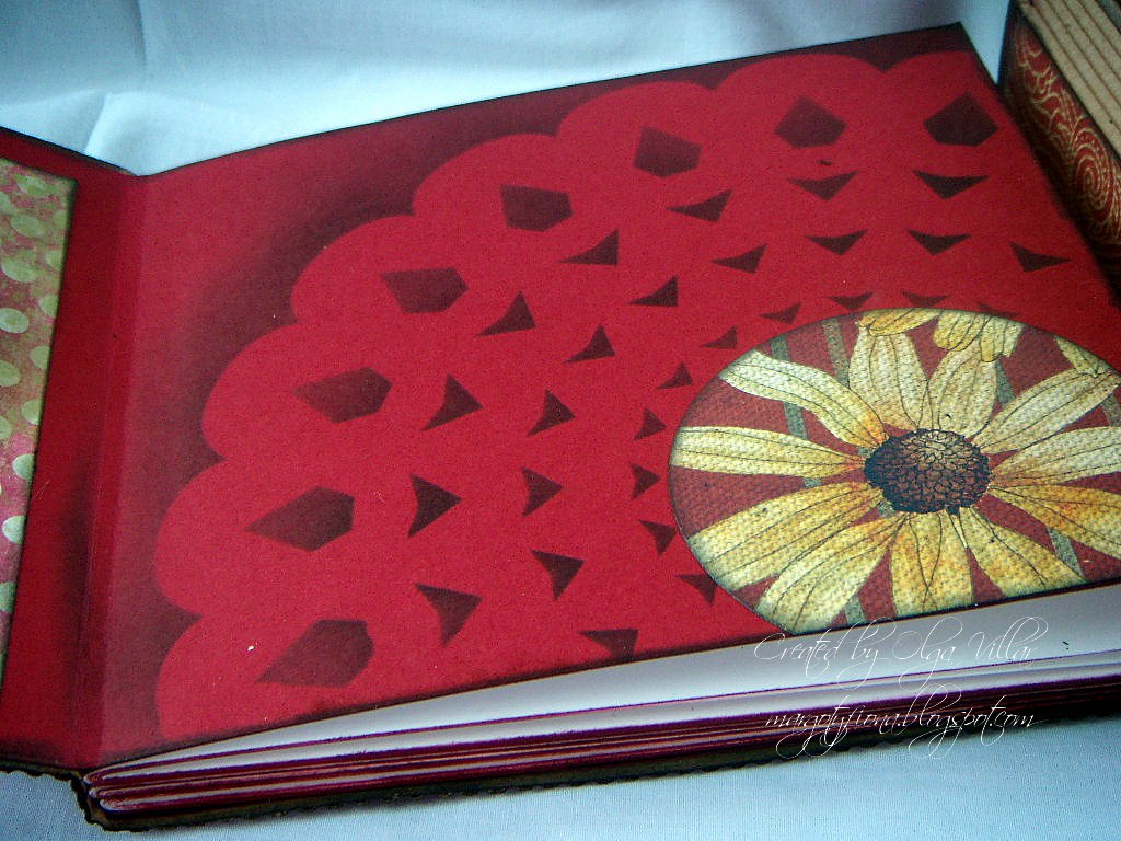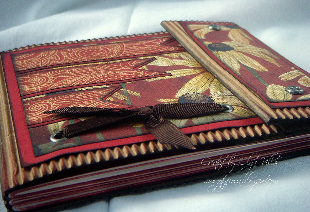 Todo el entintado está realizado con Distress Black soot, y los bordes de las hojas interiores con Distress Aged mahogany.