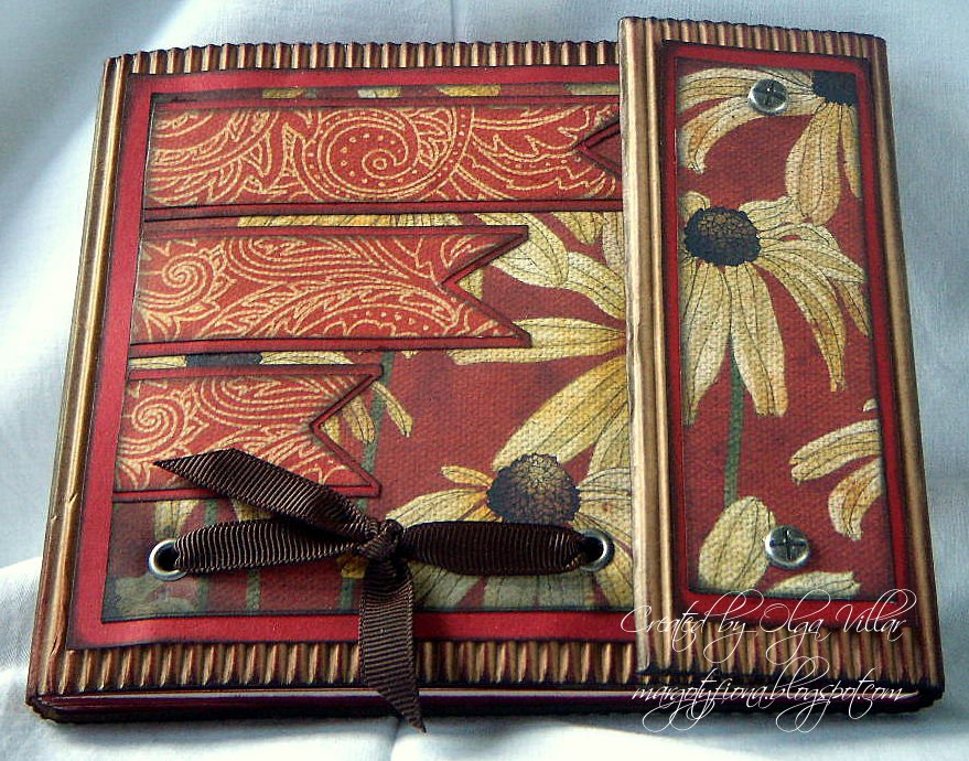 La parte trasera es sencilla con este precioso papel. Y todo el conjunto adornado con estos brad con forma de tornillos, que me parecen de lo mas divertido.