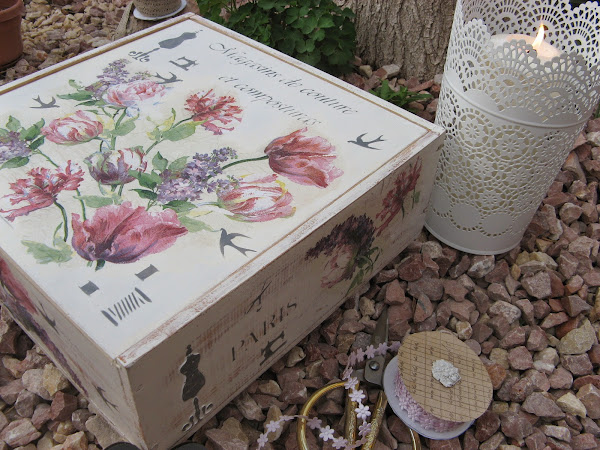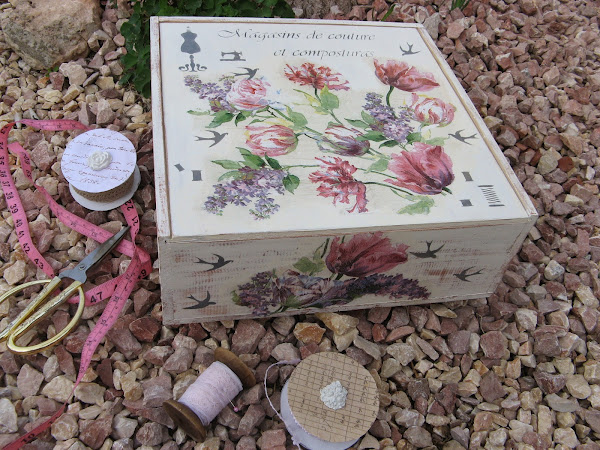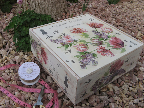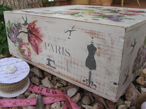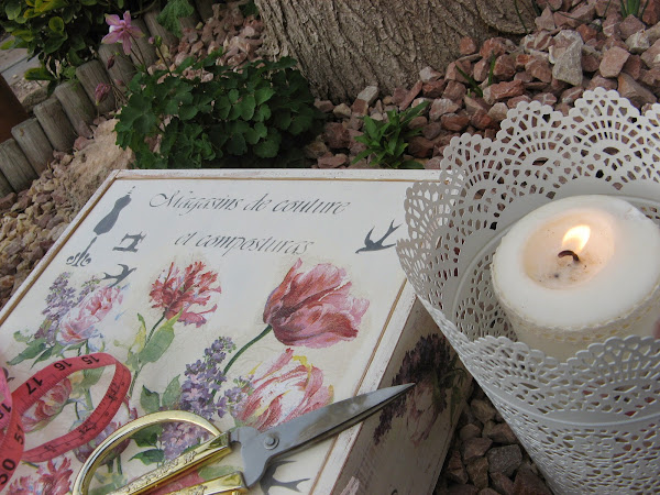 Vengo a enseñaros esta caja-costurero que terminé la semana pasada. Estoy haciendo cosas en la terraza como os dije...ya tengo pintados los muebles y ahora queda colgar cosas en las paredes (de paso ¿las pintaré primero?? ufff me dá muuucha pereza)
