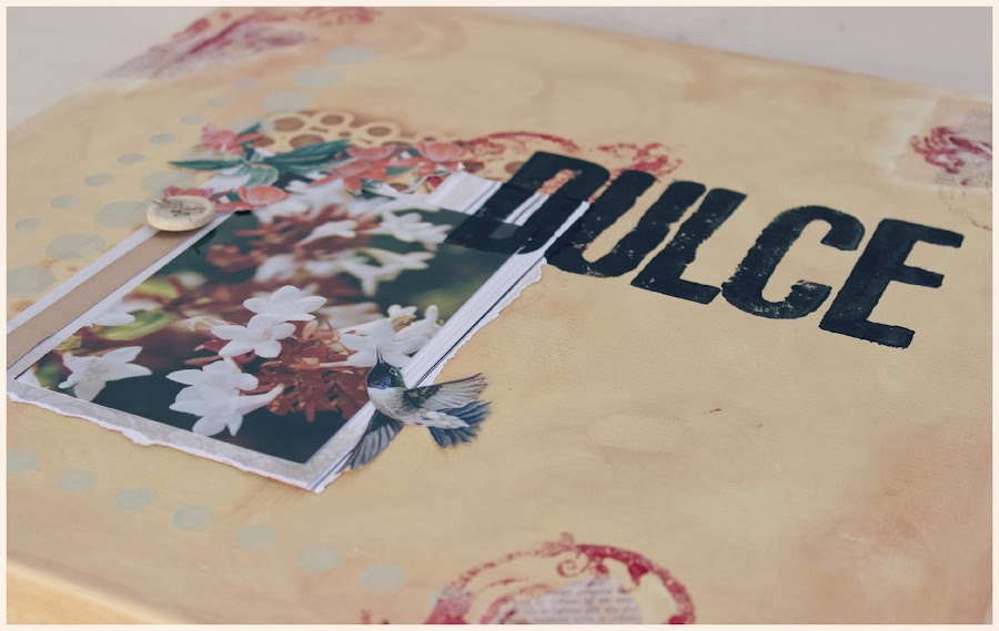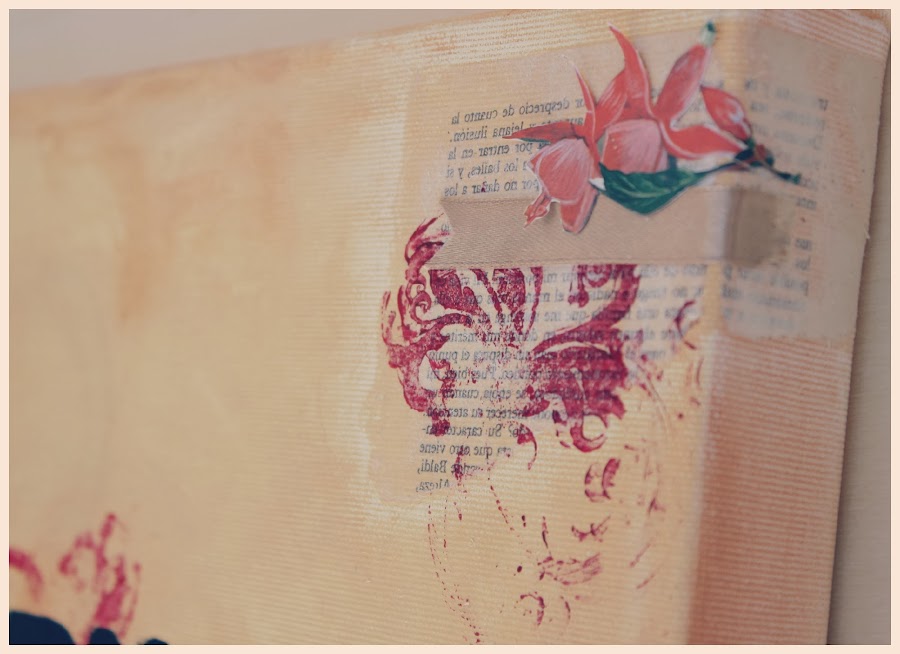 Juntando técnicas de scrap, maña e imaginación salen composiciones muy bonitas. Como veis aquí utilice pinturas acrílicas, algunos cuños, cartulinas, raso...Hay infinidad de materiales que se pueden aplicar.