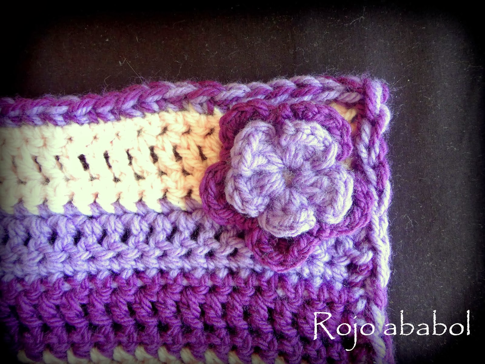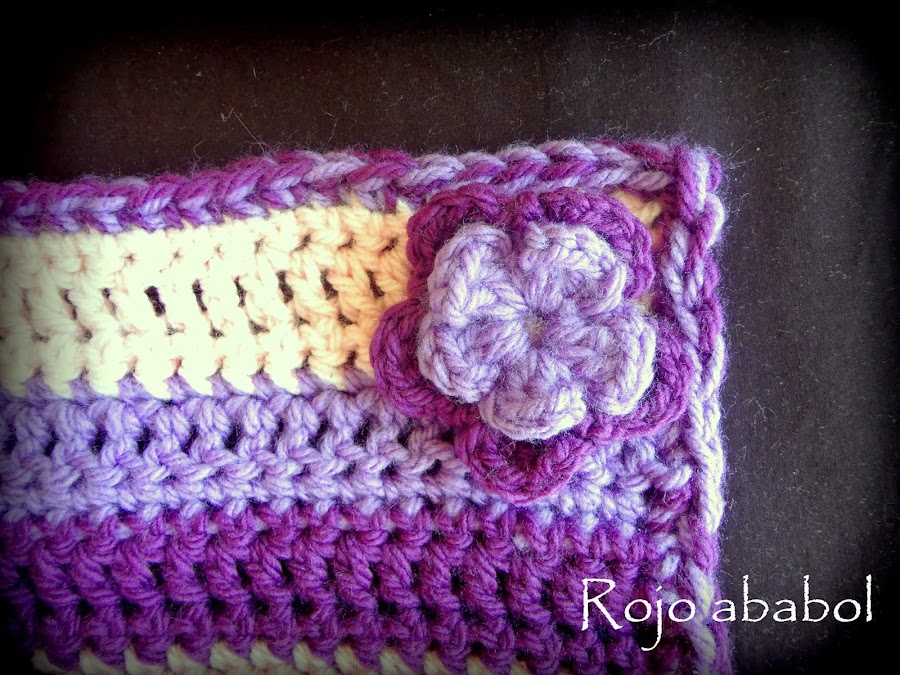 Una vez terminado el cuello le he dado una vuelta alrededor con dos cabos de diferente color juntos y un ganchillo un numero más grande. Son todo puntos enanos o rasos y le da un toque distinto al cuello.