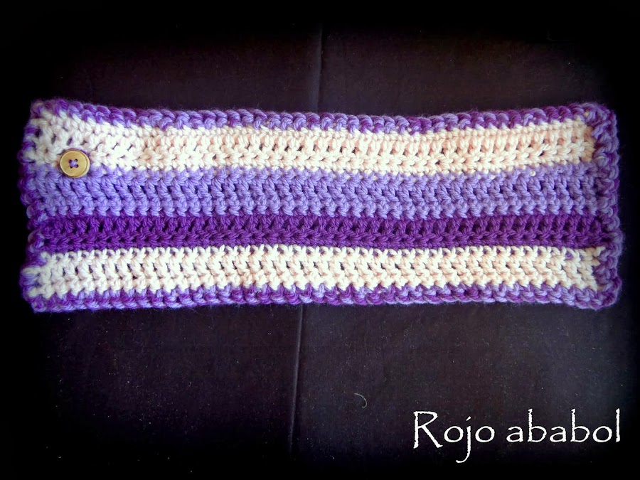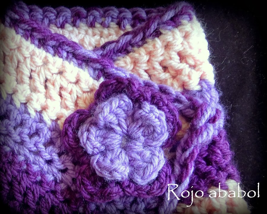 Se trata de un cuello o buff de tamaño medio, es para una niña de 5 años, pero perfectamente lo puedo llevar yo, aunque un poco más ajustado. He usado puntos raso (o enano), cadena, bajo y alto. Sin aumentos ni disminuciones, muy sencillo.