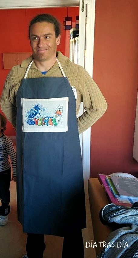 Y ya que estamos, os enseño también una foto de Víctor con su delantal, que le hizo Eva el día que se lo regaló, que siempre se ven mejor las cosas "con relleno" ;-).