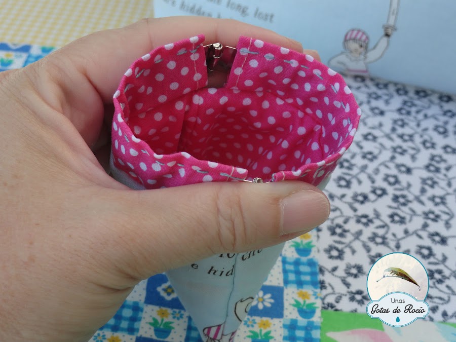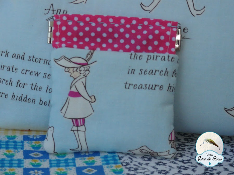 Me he hecho un pequeño monedero, planito, para llevar algo de dinero. Para el cierre he usado un fleje, y las telas, por supuesto a juego con el resto del conjunto.