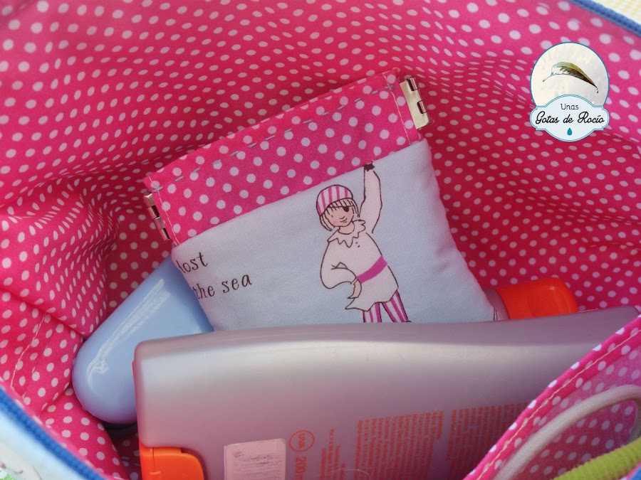 Y ya para terminar, creo, que este conjunto parece no tener fin. Al neceser le he hecho un adorno a la cremallera, que la verdad es que no sé porqué no se lo puse cuando me lo hice el otro día. Pero es otra cosa que también he solucionado.